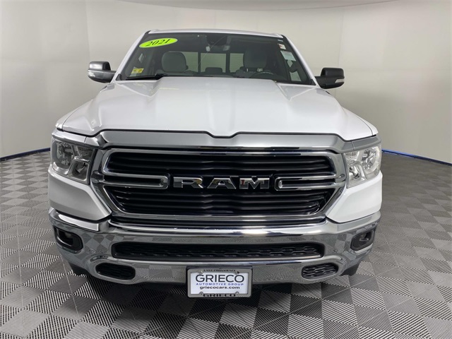 - Back Up Camera, Bluetooth, Local Trade, 1500 Big Horn/Lone Star, 4D Quad Cab, HEMI 5.7L V8 Multi Displacement VVT, 4WD, Auto-Dimming Exterior Driver Mirror, Auto-Dimming Rear-View Mirror, Big Horn Badge, Big Horn Level 1 Equipment Group, Black Premium Power Mirrors, Class IV Receiver Hitch, Cluster 3.5" TFT Color Display, Exterior Mirrors Courtesy Lamps, Exterior Mirrors w/Supplemental Signals, Foam Bottle Insert (Door Trim Panel), For More Info, Call 800-643-2112, Glove Box Lamp, Power 4-Way Driver Lumbar Adjust, Power 8-Way Driver Seat, Power Adjustable Pedals, Power-Folding Mirrors, Quick Order Package 25Z Big Horn, Radio: Uconnect 4 w/8.4" Display, Rear Dome w/On/Off Switch Lamp, Rear Power Sliding Window, Rear Window Defroster, SiriusXM Radio Service, SiriusXM Satellite Radio, Sun Visors w/Illuminated Vanity Mirrors, Universal Garage Door Opener. CARFAX One-Owner. 2021 Ram 1500 Big Horn/Lone Star Odometer is 1221 miles below market average!TO KEEP YOU SAFE, WE DELIVER!BUY ONLINE-TEXT-EMAIL-CHAT-PHONE AND WE WILL DELIVER YOUR NEXT VEHICLE TO YOUR DOOR!FROM OUR SALES FLOOR TO YOUR DOOR!IT'S THAT EASY!Grieco Toyota is out to be #1 Toyota Pre-owned sales in all of Rhode Island and SE Mass. We will not lose a deal to price. **WE SHIP NATIONWIDE!Big Horn Level 1 Equipment Group (Auto-Dimming Exterior Driver Mirror, Auto-Dimming Rear-View Mirror, Black Premium Power Mirrors, Class IV Receiver Hitch, Cluster 3.5" TFT Color Display, Exterior Mirrors Courtesy Lamps, Exterior Mirrors w/Supplemental Signals, Foam Bottle Insert (Door Trim Panel), For More Info, Call 800-643-2112, Glove Box Lamp, Power 4-Way Driver Lumbar Adjust, Power 8-Way Driver Seat, Power Adjustable Pedals, Power-Folding Mirrors, Radio: Uconnect 4 w/8.4" Display, Rear Dome w/On/Off Switch Lamp, Rear Power Sliding Window, Rear Window Defroster, SiriusXM Radio Service, SiriusXM Satellite Radio, Sun Visors w/Illuminated Vanity Mirrors, and Universal Garage Door Opener), Quick Order Package 25Z Big Horn (Big Horn Badge), 1500 Big Horn/Lone Star, 4D Quad Cab, HEMI 5.7L V8 Multi Displacement VVT, 4WD, 3 Rear Seat Head Restraints, 3.21 Rear Axle Ratio, 4 Way Front Headrests, 4-Wheel Disc Brakes, 40/20/40 Split Bench Seat, 48V Belt Starter Generator, 6 Speakers, ABS brakes, Air Conditioning, Alloy wheels, AM/FM radio, Black Exterior Mirrors, Brake assist, Bumpers: chrome, Cloth Bench Seat, Compass, Delay-off headlights, Driver door bin, Dual front impact airbags, Dual front side impact airbags, Electronic Stability Control, Front anti-roll bar, Front Center Armrest w/Storage, Front fog lights, Front License Plate Bracket, Front reading lights, Front Seat Back Map Pockets, Front wheel independent suspension, Fully automatic headlights, GPS Antenna Input, Heated door mirrors, Illuminated entry, Integrated Voice Command w/Bluetooth, Leather steering wheel, Low tire pressure warning, Manual Adjust 4-Way Front Passenger Seat, Occupant sensing airbag, Outside temperature display, Overhead airbag, Overhead console, Panic alarm, ParkView Rear Back-Up Camera, Passenger door bin, Passenger vanity mirror, Power door mirrors, Power steering, Power windows, Radio data system, Radio: Uconnect 3 w/5" Display, Rear 60/40 Folding Seat, Rear anti-roll bar, Rear seat center armrest, Rear step bumper, Remote keyless entry, Remote Start System, Speed control, Split folding rear seat, Steering wheel mounted audio controls, Tachometer, Telescoping steering wheel, Tilt steering wheel, Traction control, Trip computer, Variably intermittent wipers, Voltmeter, and Wheels: 18" x 8" Cast-Aluminum Painted.