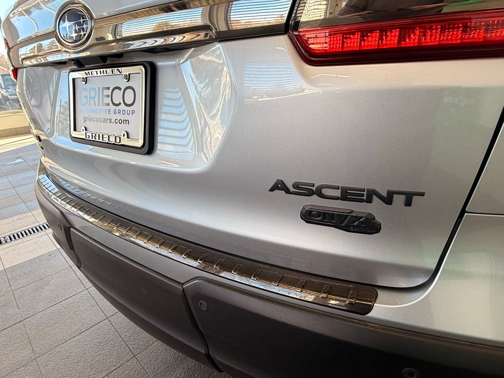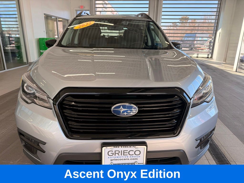 - CARFAX One-Owner. 2022 Subaru Ascent Onyx Edition Ice Silver Metallic 20/26 City/Highway MPGClean CARFAX.Grieco Chrysler Jeep Dodge Ram is out to be #1. We will not lose a deal to price. Lease and loan quoting are dynamic, so payments and terms are subject to change before contracting. Please call 978-291-7872 for a detailed quote and confirm availability. **WE SHIP NATIONWIDE!Equipped with PMR + Navi + TC (Cargo Area Cover, Dual Glass Panoramic Power Moonroof, and Radio: Subaru STARLINK 8.0" Multimedia Nav System), 3rd row seats: bench, 4-Wheel Disc Brakes, 6 Speakers, ABS brakes, Air Conditioning, Alloy wheels, AM/FM radio: SiriusXM, Auto High-beam Headlights, Auto-Dimming Mirror w/Compass & HomeLink, Auto-dimming Rear-View mirror, Automatic temperature control, Axle Ratio: 4.44, Brake assist, Bumpers: body-color, CD player, Compass, Delay-off headlights, Driver door bin, Driver vanity mirror, Dual front impact airbags, Dual front side impact airbags, Electronic Stability Control, Emergency communication system: STARLINK Safety and Security (Subscription Required), Exterior Parking Camera Rear, Four wheel independent suspension, Front anti-roll bar, Front Bucket Seats, Front Center Armrest, Front dual zone A/C, Front fog lights, Front reading lights, Fully automatic headlights, Garage door transmitter: HomeLink, Heated door mirrors, Heated Front Bucket Seats, Heated front seats, Heated steering wheel, Illuminated entry, Knee airbag, Low tire pressure warning, Navigation System, Occupant sensing airbag, Outside temperature display, Overhead airbag, Overhead console, Panic alarm, Passenger door bin, Passenger vanity mirror, Power door mirrors, Power driver seat, Power Liftgate, Power steering, Power windows, Radio data system, Radio: Subaru STARLINK 8.0" Multimedia Plus System, Rear air conditioning, Rear anti-roll bar, Rear reading lights, Rear window defroster, Rear window wiper, Reclining 3rd row seat, Remote keyless entry, Security system, Speed control, Split folding rear seat, Spoiler, STARLINK/Apple CarPlay/Android Auto, StarTex Upholstery, Steering wheel mounted audio controls, Tachometer, Telescoping steering wheel, Tilt steering wheel, Traction control, Trip computer, Variably intermittent wipers, and Wheels: 20" x 7.5 J Black Finish Alloy“Please verify all information. Although we are meticulous in our efforts to provide detailed and accurate information, complete accuracy cannot be guaranteed. We are not responsible for any misprints or typographical errors and cannot be held liable for any inaccuracies. To ensure your complete satisfaction, please verify accuracy of all information prior to purchase. The Grieco Automotive Group does not believe in artificially inflating our vehicle prices. We diligently track market trends to keep our prices competitive and pride ourselves in not playing pricing games. Because of this, prices are subject to change without notice and all inventory is subject to prior sale. Prices do not include tax, title, dealer fee, or registration fees. Actual mileage may vary. All sales are subject to credit check, terms may vary. We offer a 3-day or 300-mile money-back guarantee on new and used vehicles. Offer valid until the car is registered or the contract is funded with the lending institution. Excludes factory/specialty ordered vehicles.