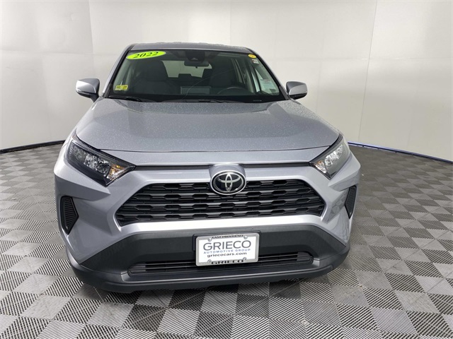 - Recent Arrival! Back Up Camera, Bluetooth, Accident Free Carfax, Toyota Safety Sense - Lane Departure Alert, Pre-Collision System with Pedestrian Detection, Local Trade, RAV4 LE, AWD, Cloth. CARFAX One-Owner. 2022 Toyota RAV4 LE Clean CARFAX. 27/34 City/Highway MPGTO KEEP YOU SAFE, WE DELIVER!BUY ONLINE-TEXT-EMAIL-CHAT-PHONE AND WE WILL DELIVER YOUR NEXT VEHICLE TO YOUR DOOR!FROM OUR SALES FLOOR TO YOUR DOOR!IT'S THAT EASY!Grieco Toyota is out to be #1 Toyota Pre-owned sales in all of Rhode Island and SE Mass. We will not lose a deal to price. **WE SHIP NATIONWIDE!RAV4 LE, AWD, Cloth, 17" Steel Wheels, 4-Wheel Disc Brakes, 6 Speakers, ABS brakes, Air Conditioning, AM/FM radio: SiriusXM, AM/FM Stereo, Apple CarPlay/Android Auto, Auto High-beam Headlights, Axle Ratio: 3.177, Brake assist, Bumpers: body-color, Driver door bin, Driver vanity mirror, Dual front impact airbags, Dual front side impact airbags, Electronic Stability Control, Emergency communication system: Safety Connect with 1-year trial, Exterior Parking Camera Rear, Fabric Seat Trim, Four wheel independent suspension, Front anti-roll bar, Front Bucket Seats, Front Center Armrest, Front reading lights, Illuminated entry, Knee airbag, Low tire pressure warning, Occupant sensing airbag, Outside temperature display, Overhead airbag, Overhead console, Panic alarm, Passenger door bin, Passenger vanity mirror, Power door mirrors, Power steering, Power windows, Radio data system, Rear anti-roll bar, Rear seat center armrest, Rear window defroster, Rear window wiper, Remote keyless entry, Speed control, Speed-sensing steering, Split folding rear seat, Spoiler, Steering wheel mounted audio controls, Tachometer, Telescoping steering wheel, Tilt steering wheel, Traction control, and Trip computer.