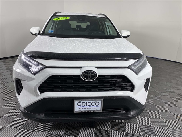 - Back Up Camera, Bluetooth, Toyota Safety Sense - Lane Departure Alert, Pre-Collision System with Pedestrian Detection, RAV4 XLE, AWD, Cloth. CARFAX One-Owner. 2022 Toyota RAV4 XLE Odometer is 10387 miles below market average! 27/33 City/Highway MPGTO KEEP YOU SAFE, WE DELIVER!BUY ONLINE-TEXT-EMAIL-CHAT-PHONE AND WE WILL DELIVER YOUR NEXT VEHICLE TO YOUR DOOR!FROM OUR SALES FLOOR TO YOUR DOOR!IT'S THAT EASY!Grieco Toyota is out to be #1 Toyota Pre-owned sales in all of Rhode Island and SE Mass. We will not lose a deal to price. **WE SHIP NATIONWIDE!RAV4 XLE, AWD, Cloth, 4-Wheel Disc Brakes, 6 Speakers, ABS brakes, Air Conditioning, Alloy wheels, AM/FM radio: SiriusXM, AM/FM Stereo, Apple CarPlay/Android Auto, Auto High-beam Headlights, Automatic temperature control, Axle Ratio: 3.177, Brake assist, Bumpers: body-color, Delay-off headlights, Driver door bin, Driver vanity mirror, Dual front impact airbags, Dual front side impact airbags, Electronic Stability Control, Emergency communication system: Safety Connect with 1-year trial, Exterior Parking Camera Rear, Fabric Seat Trim, Four wheel independent suspension, Front anti-roll bar, Front Bucket Seats, Front Center Armrest, Front dual zone A/C, Front reading lights, Fully automatic headlights, Heated door mirrors, Illuminated entry, Knee airbag, Low tire pressure warning, Occupant sensing airbag, Outside temperature display, Overhead airbag, Overhead console, Panic alarm, Passenger door bin, Passenger vanity mirror, Power door mirrors, Power driver seat, Power steering, Power windows, Radio data system, Rear anti-roll bar, Rear seat center armrest, Rear window defroster, Rear window wiper, Remote keyless entry, Roof rack: rails only, Speed control, Speed-sensing steering, Split folding rear seat, Spoiler, Steering wheel mounted audio controls, Tachometer, Telescoping steering wheel, Tilt steering wheel, Traction control, Trip computer, Turn signal indicator mirrors, Variably intermittent wipers, and Wheels: 17" 5-Spoke Silver Alloy.