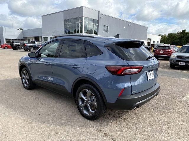 - CARFAX One-Owner. 2025 Ford Escape ST-Line Vapor Blue Metallic 26/32 City/Highway MPGEquipped with Cold Weather Package (Heated Front Row Seats, Heated Sideview Mirrors, Heated Steering Wheel, and Remote Starter System), Equipment Group 300A, 3.81 Axle Ratio, 4-Wheel Disc Brakes, 6 Speakers, ABS brakes, Air Conditioning, Alloy wheels, AM/FM radio: SiriusXM, AM/FM Stereo, Auto High-beam Headlights, Automatic temperature control, Black Roof-Rack Side Rails, Brake assist, Bumpers: body-color, Compass, Delay-off headlights, Driver door bin, Driver vanity mirror, Dual front impact airbags, Dual front side impact airbags, Electronic Stability Control, Emergency communication system: SYNC 4 911 Assist, FordPass Connect, Four wheel independent suspension, Front anti-roll bar, Front Bucket Seats, Front Center Armrest, Front dual zone A/C, Front License Plate Bracket, Front reading lights, Fully automatic headlights, Illuminated entry, Internet access capable: FordPass Connect 4G, Knee airbag, Low tire pressure warning, Occupant sensing airbag, Outside temperature display, Overhead airbag, Overhead console, Panic alarm, Panoramic Vista Roof, Passenger door bin, Passenger vanity mirror, Power door mirrors, Power driver seat, Power Liftgate, Power steering, Power windows, Radio data system, Rear anti-roll bar, Rear reading lights, Rear seat center armrest, Rear window defroster, Rear window wiper, Remote keyless entry, Speed control, Speed-sensing steering, Speed-Sensitive Wipers, Split folding rear seat, Spoiler, Sport steering wheel, Steering wheel mounted audio controls, SYNC 4, Tachometer, Telescoping steering wheel, Tilt steering wheel, Traction control, Trip computer, Variably intermittent wipers, Vinyl/Cloth Front Sport Contour Bucket Seats, and Wheels: 18" Rock Metallic Painted Aluminum.