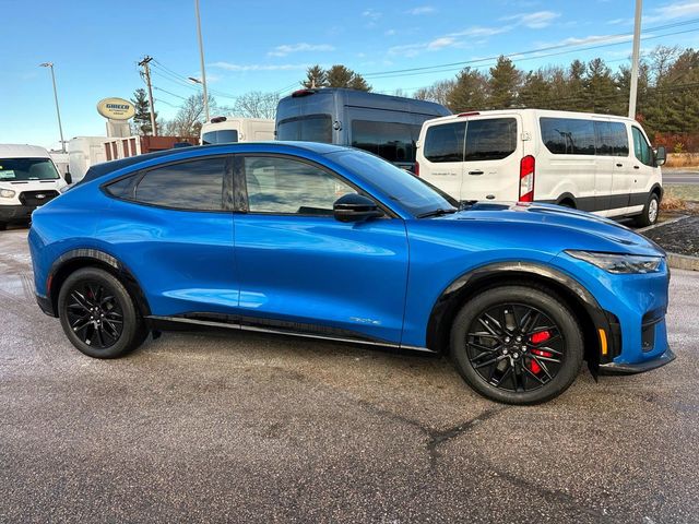 - Odometer is 591 miles below market average! CARFAX One-Owner. 2025 Ford Mustang Mach-E Premium Velocity Blue Metallic 103/94 City/Highway MPGEquipped with Equipment Group 300A Standard Package, Interior Protection Package (1st & 2nd Row Floor Liners w/o Carpet Mats, Cargo Area Cover, and Cargo Floor Liner), Sport Appearance Package (Brembo Branded Front Brakes, Red Painted Front & Rear Brake Calipers, Sport Pedals, Unique Front Fascia, and Wheels: 19" Monochromatic High Gloss Black-Painted), 10 Speakers, 4-Wheel Disc Brakes, ABS brakes, Air Conditioning, Alloy wheels, AM/FM radio: SiriusXM with 360L, Apple CarPlay/Android Auto, Auto High-beam Headlights, Auto-dimming Rear-View mirror, Automatic temperature control, Brake assist, Bumpers: body-color, Compass, Delay-off headlights, Driver door bin, Driver vanity mirror, Dual front impact airbags, Dual front side impact airbags, Electronic Stability Control, Emergency communication system: 911 Assist, Exterior Parking Camera Rear, Four wheel independent suspension, Front anti-roll bar, Front Bucket Seats, Front Center Armrest, Front dual zone A/C, Front License Plate Bracket, Front reading lights, Fully automatic headlights, Garage door transmitter, Heated door mirrors, Heated front seats, Heated steering wheel, Heated/Ventilated Perforated ActiveX Bucket Seats, Illuminated entry, Internet access capable: FordPass Connect, Knee airbag, Low tire pressure warning, Memory seat, Mobile Power Cord (120V/240V), NACS Fast Charging Adapter, Navigation system: Connected Navigation, Occupant sensing airbag, Outside temperature display, Overhead airbag, Overhead console, Panic alarm, Panoramic Fixed-Glass Roof, Passenger door bin, Passenger vanity mirror, Power door mirrors, Power driver seat, Power Liftgate, Power passenger seat, Power steering, Power windows, Radio data system, Radio: B&O Sound System by Bang & Olufsen, Rain sensing wipers, Rear anti-roll bar, Rear seat center armrest, Rear side impact airbag, Rear window defroster, Rear window wiper, Remote keyless entry, Security system, SiriusXM w/360L, Speed control, Speed-sensing steering, Speed-Sensitive Wipers, Split folding rear seat, Spoiler, Steering wheel mounted audio controls, SYNC 4A w/Enhanced Voice Recognition, Telescoping steering wheel, Tilt steering wheel, Tire Inflator & Sealant Kit, Traction control, Trip computer, Turn signal indicator mirrors, Variably intermittent wipers, Ventilated front seats, and Wheels: 19" Bright Machined-Face Aluminum.